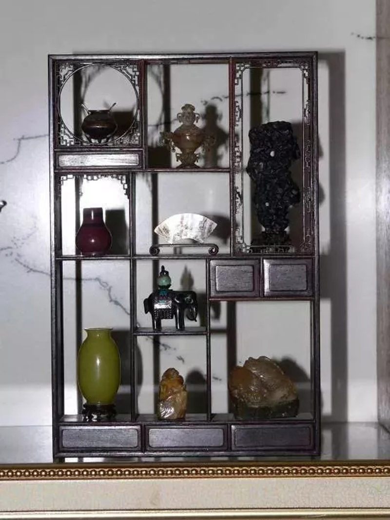 ▲漱芳斋多宝架(含陈设118件),获上海市民间艺术博览会银