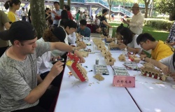 同时上海工艺美术学院老师们为我们带来了“添彩龙舟”、“木贴画工艺”、“软陶手艺”、“剪纸窗花”一系列传统手工艺作品展示,两位帅气的外国小哥哥在龙舟台描金绘彩是不是特别惹眼。